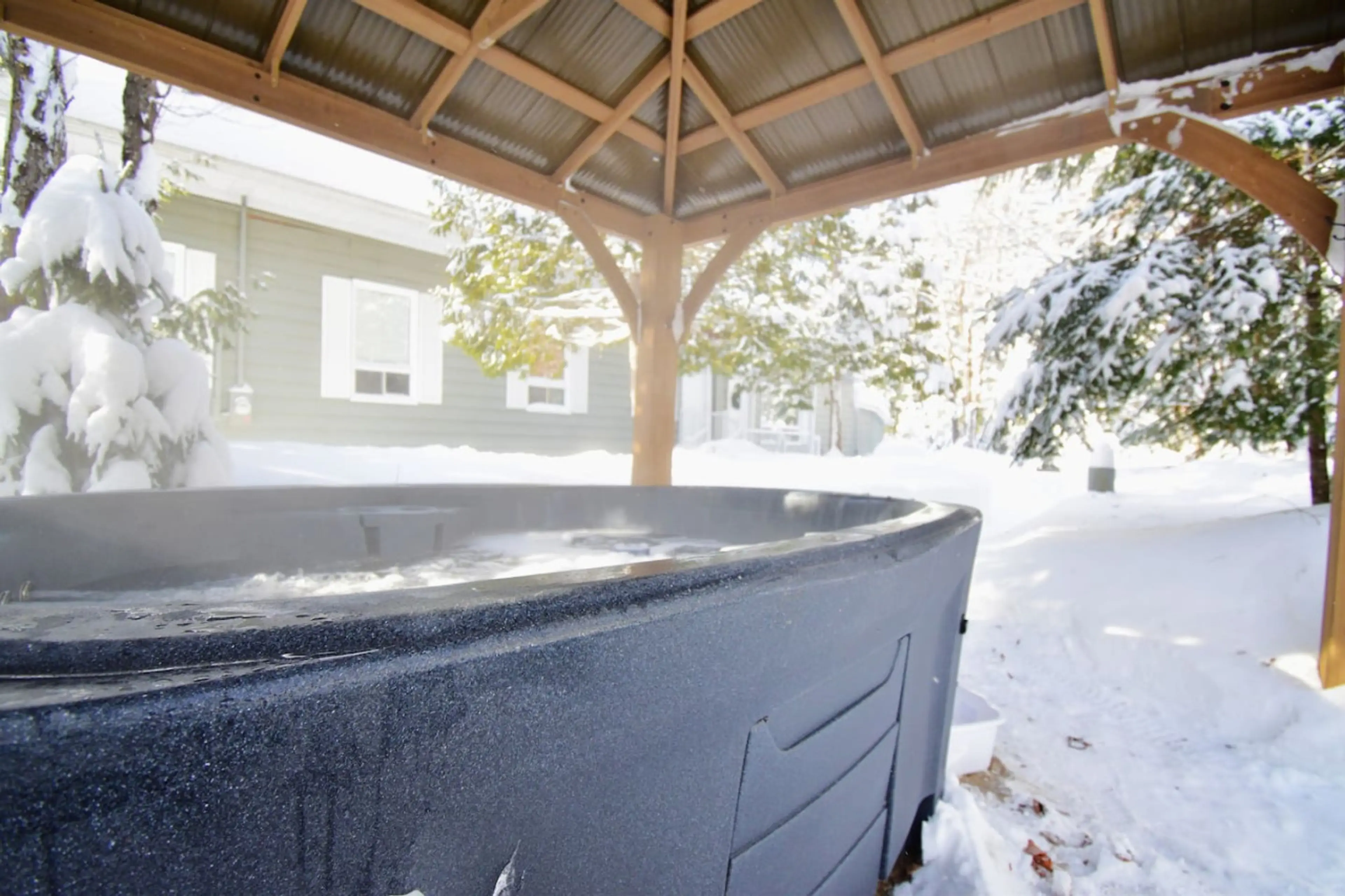 Rustic chalet with a private SPA exudes warmth with its wooden interior reminiscent of old train stations, boasting high ceilings. An antique and unique buffet has been transformed with the addition of a cooktop and sink, providing ample workspace. All the amenities for cooking can be found within t...