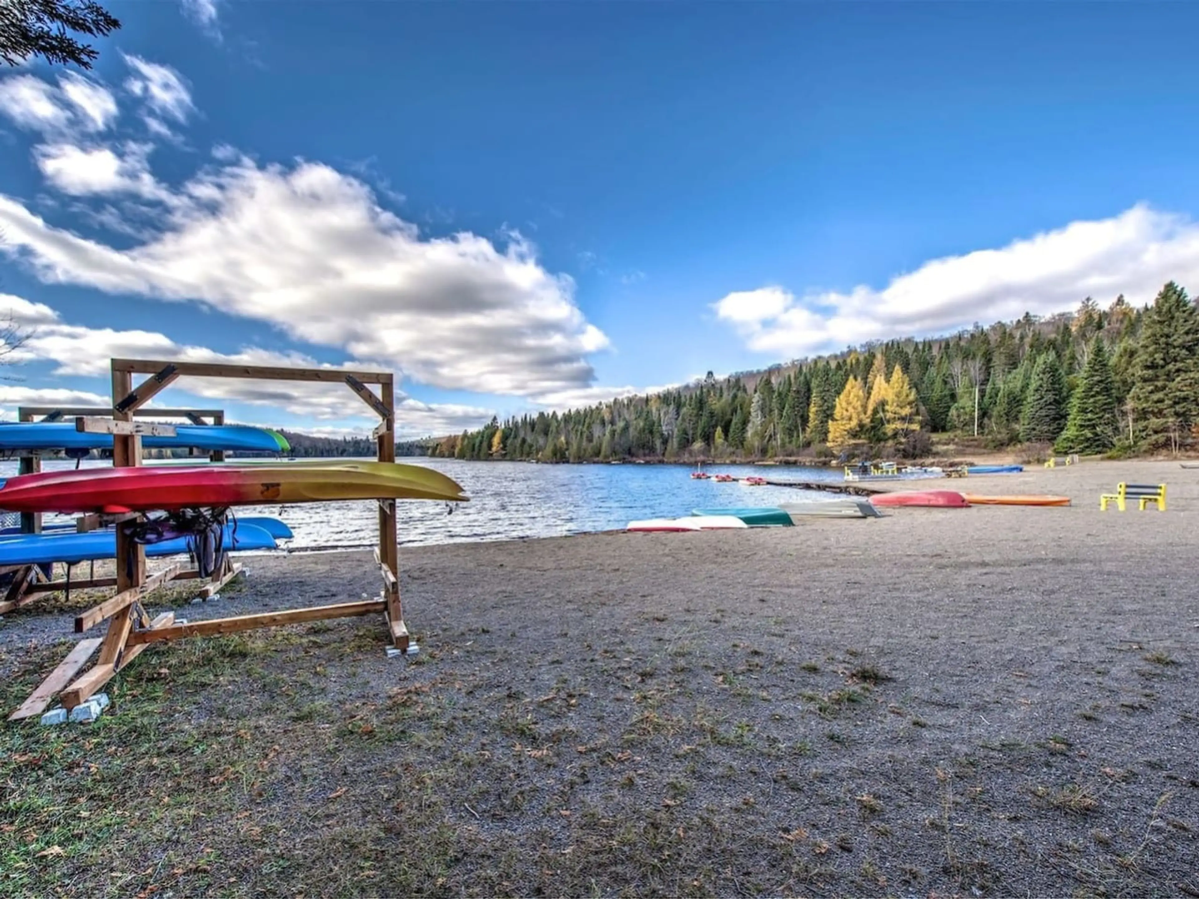 Chaleureux loft moderne (2021) tout équipé avec cuisine complète au haut d'une auberge. Accès plage privée du Domaine, climatisé, foyer électrique, wifi, câble, balcon côté lac, douche parapluie, BBQ, 2 kayaks exclusifs en été. Café-bistro santé au rez-de-chaussée pour un déjeuner et diner réconfort...