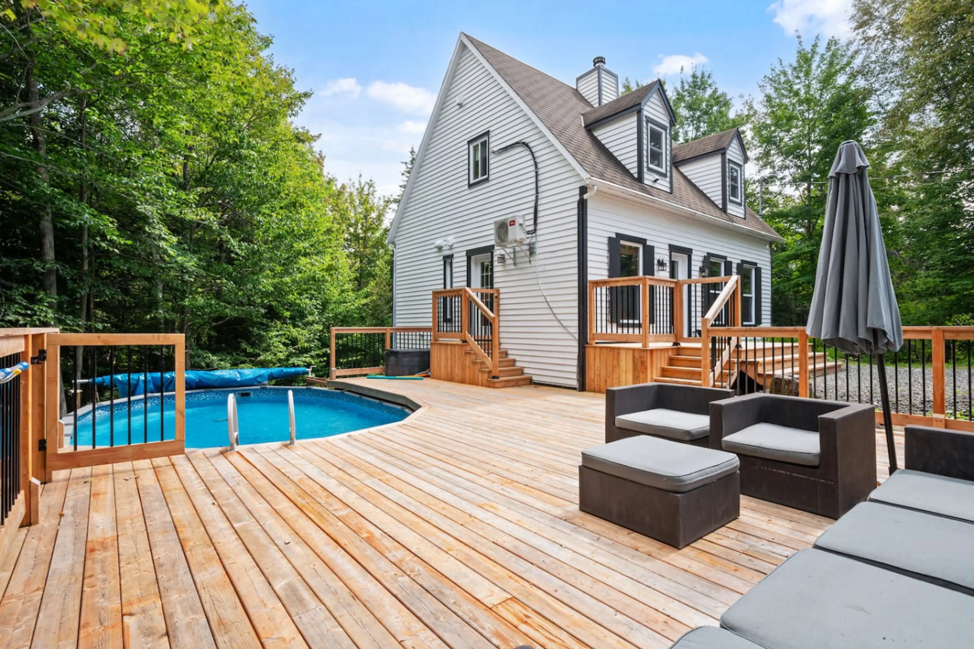 Welcome to Chic Montagnard Located just 5 minutes from the entrance of Sommet Morin Heights, this spacious chalet offers all the comfort you need to relax and create unforgettable memories. Enjoy an open-concept kitchen and living area with a 4-sided fireplace, a private spa, and a summer pool wit...
