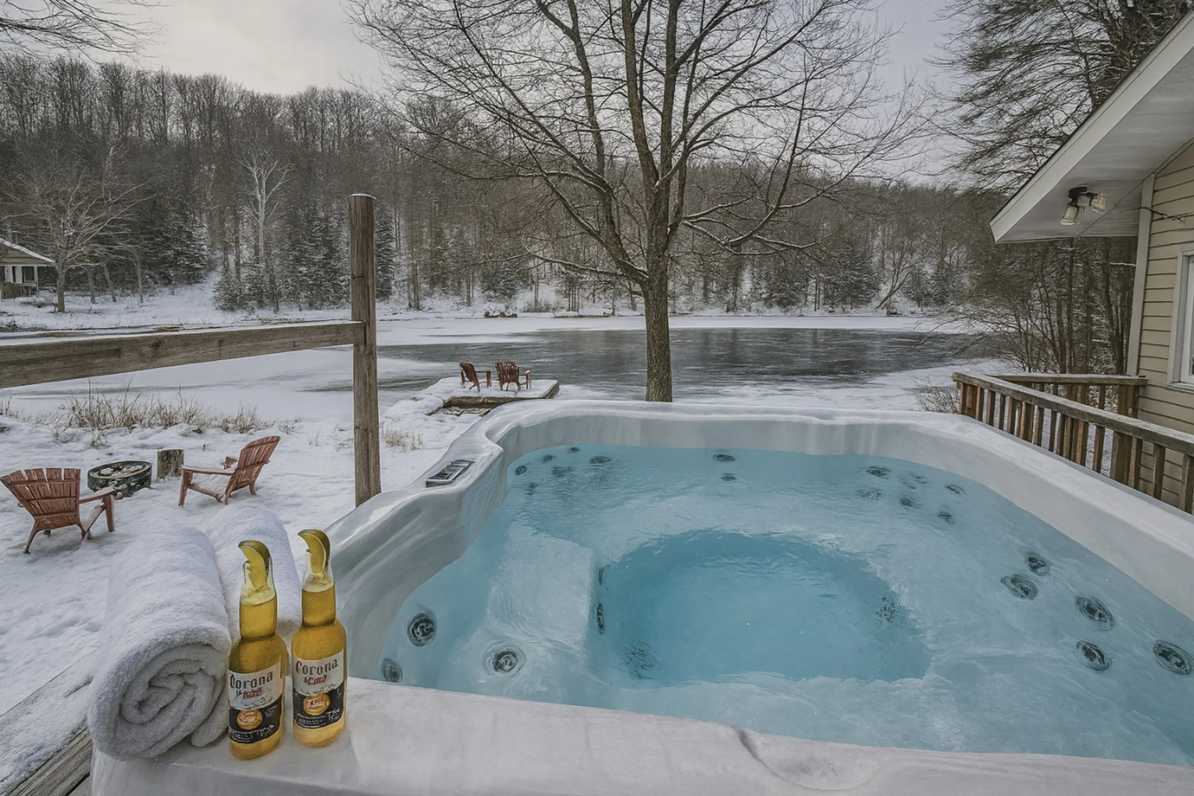 Magnifique chalet. Très propre, dispose de tous les équipements nécessaires, très bien situé et très paisible. Le quai privé avec accès au lac et le spa sont vraiment des atouts. Je recommanderais sans hésiter !
