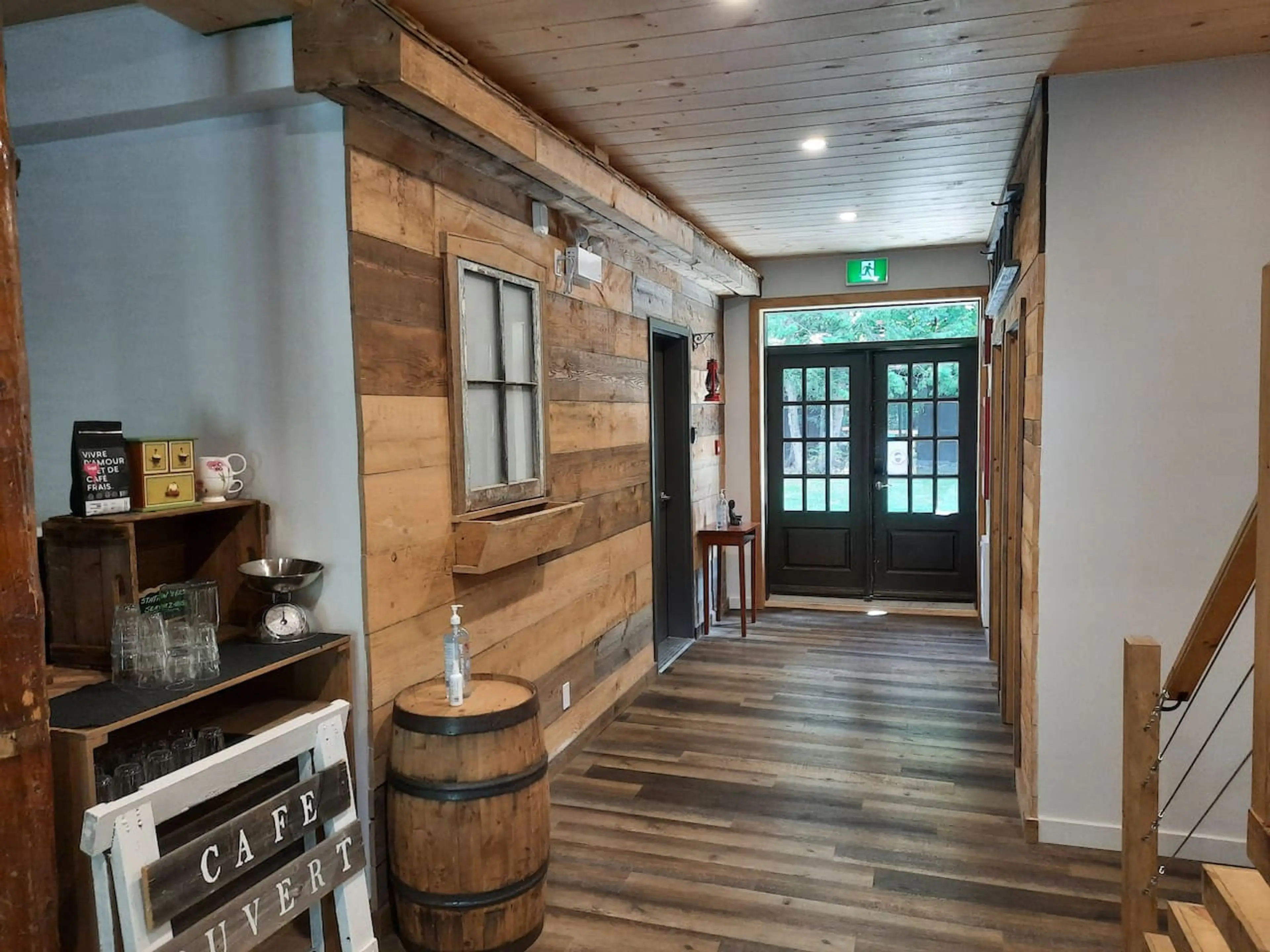 Chaleureux loft moderne (2021) tout équipé avec cuisine complète au haut d'une auberge. Accès plage privée du Domaine, climatisé, foyer électrique, wifi, câble, balcon semi-privé côté lac, douche parapluie, BBQ, 2 kayaks exclusifs en été. Café-bistro santé au rez-de-chaussée pour un déjeuner et dine...
