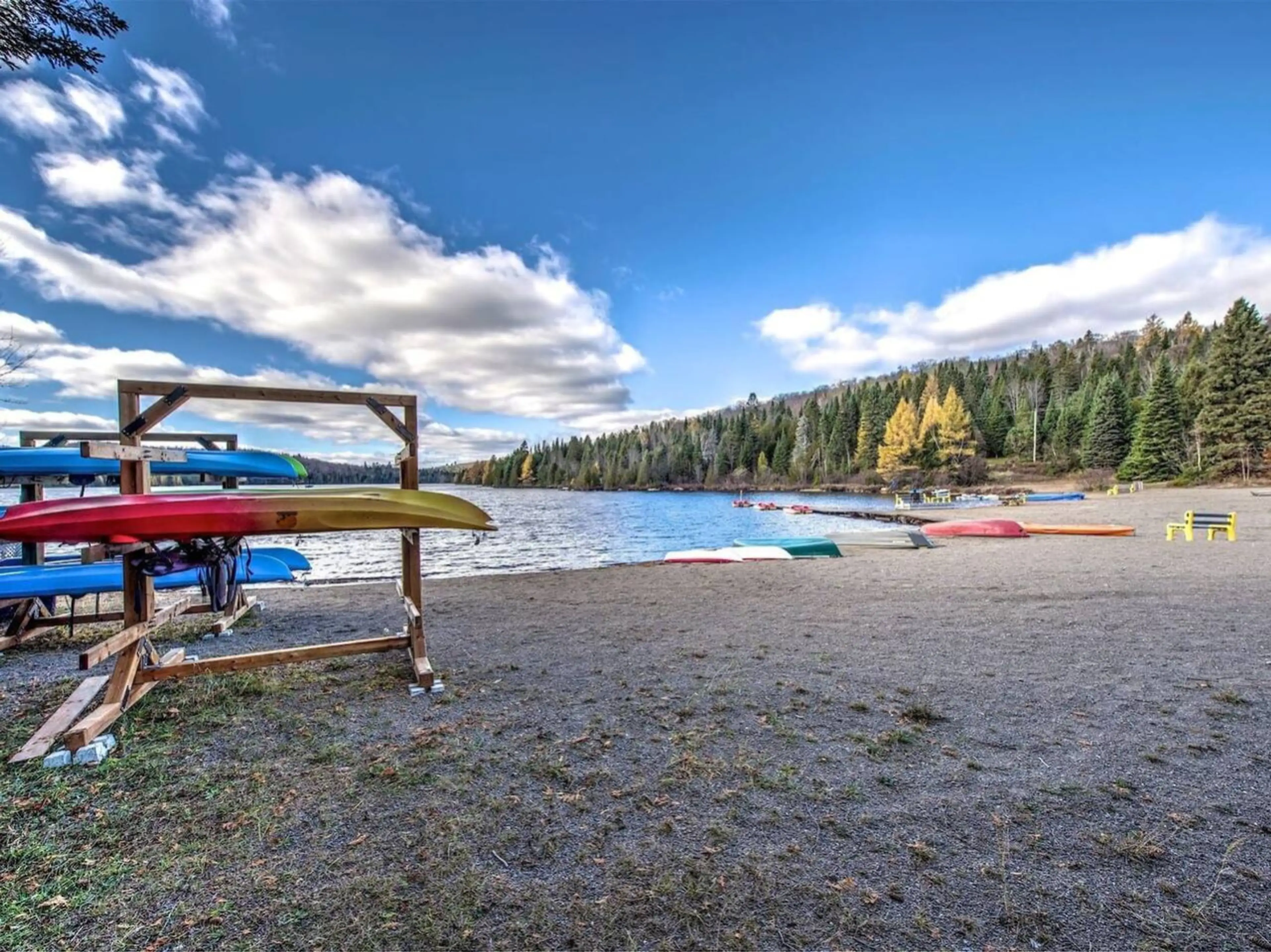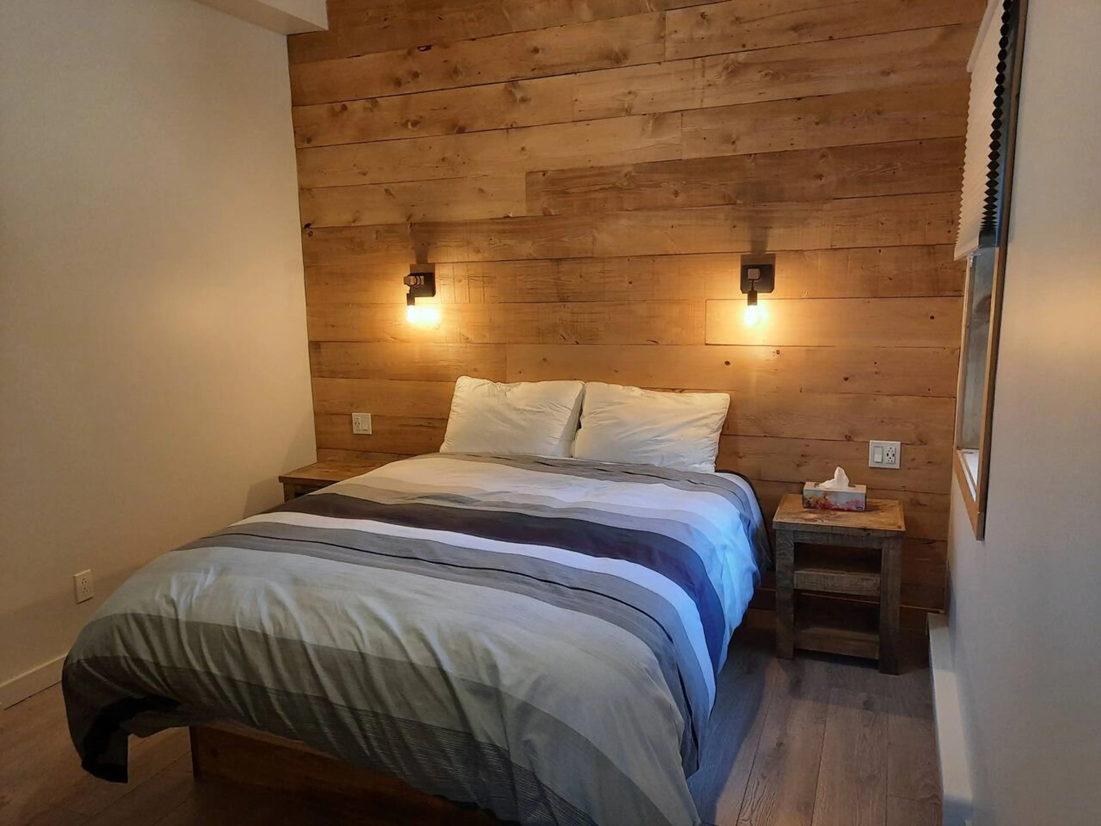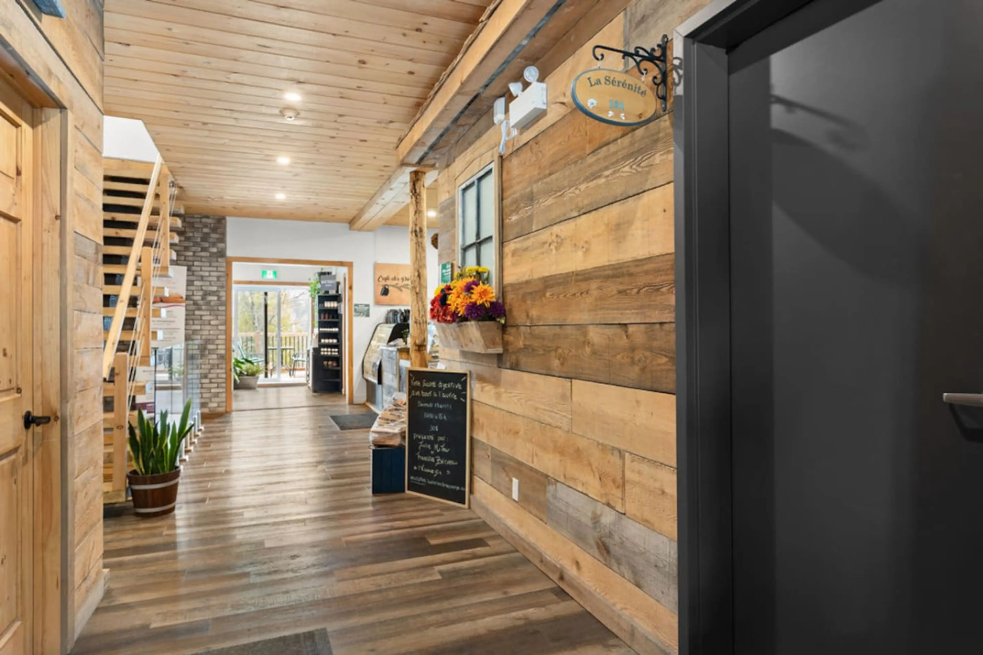 Chaleureux loft moderne (2021) tout équipé avec cuisine complète au rez-de-chaussée d'une auberge. Aucun escalier. Accès plage privée du Domaine, bureau de travail, climatisé, foyer électrique, wifi, câble, douche parapluie, 2 kayaks exclusifs en été. Café-bistro santé au même niveau pour un déjeune...